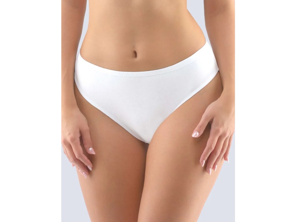 Kalhotky klasického střihu, dámské šité prádlo. V pasovém kraji je zašitá úzká pruženka. V nohavičkách je zašitá úzká pruženka. Kalhotky jsou jednobarevné.