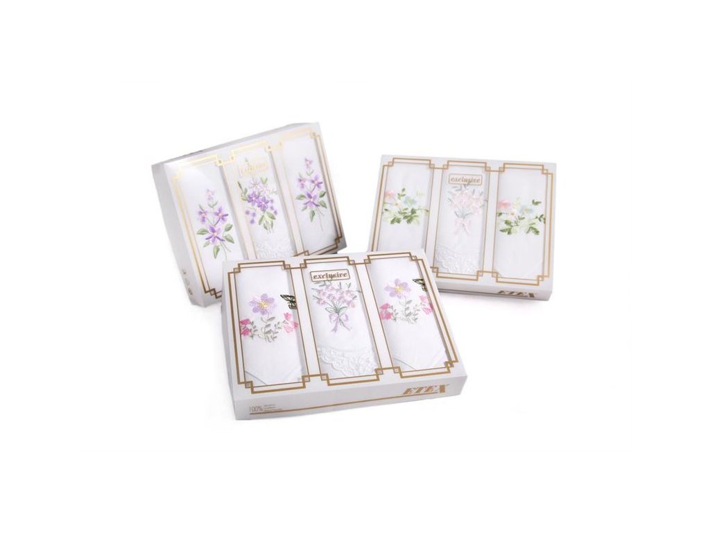 Kapesník dámský L25, VÝŠIVKA, dárkové balení 3 ks