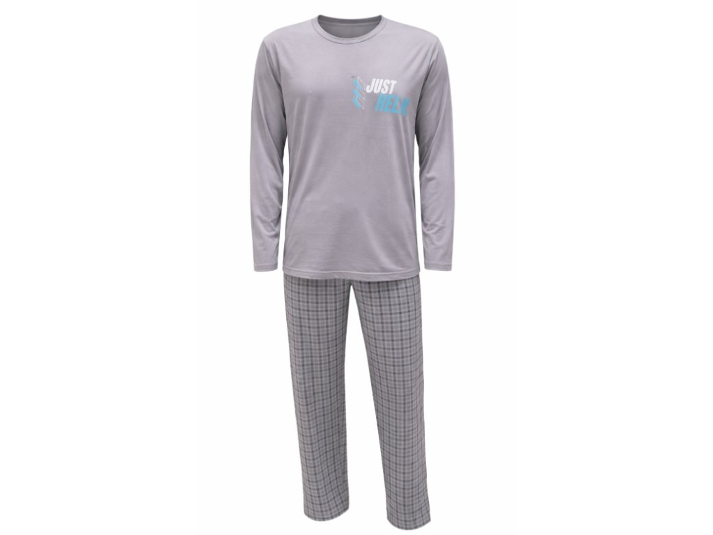 Pánské dlouhé bavlněné pyžamo. Vyrobeno z kvalitní certifikované 100% bavlny. Střih pyžama je volného strihu s výstřihem do U. Zakončení rukávů a kalhot je bez nápletu (manžety). Lem u krku je v barvě kalhot. Na prsou praktická kapsička.Doplňkové parametry