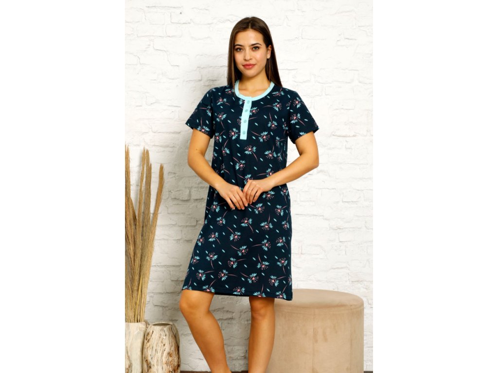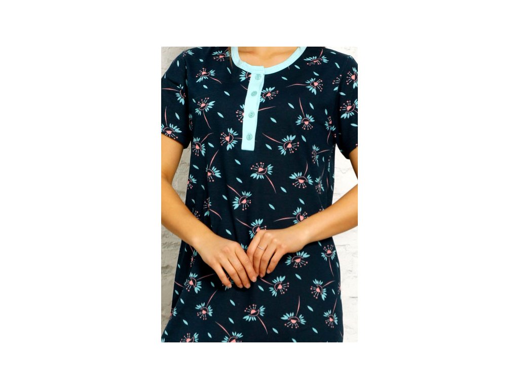 Dámská noční košile v modré barvě s jemnými puntíky. Košilka má kulatý výstřih, dlouhý rukáv a knoflíkovou légou. Pohodlý střih.Doplňkové parametry