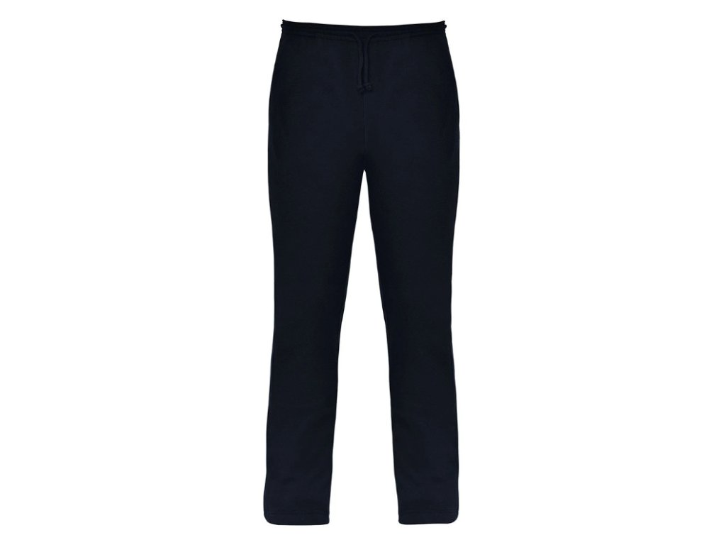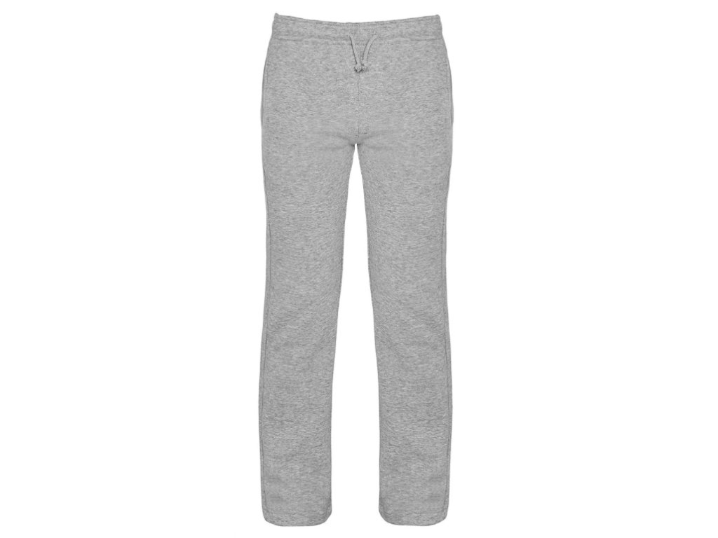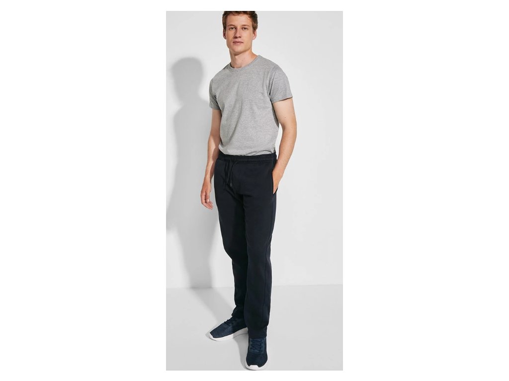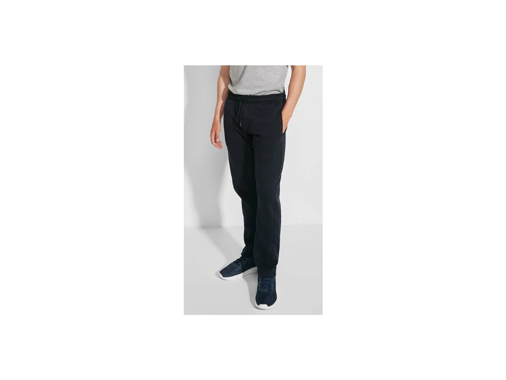 Silnější tepláky rovného střihu se dvěma bočními kapsami a nastavitelným obvodem pasu pomocí stahovací tkaničky.