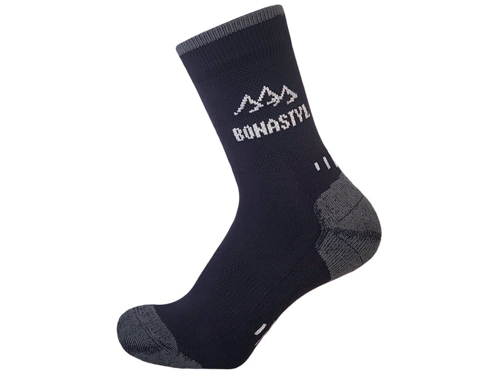 Atraktivní sportovní ponožky vhodné jak pro běžné denní nošení, tak i pro sportovní aktivity. Ponožky jsou vyrobené s měkkým plyšem v celém chodidle pro lepší došlap a komfortní nošení. Elastický pruh v nártu ponožku výborně fixuje na noze a brání tak jejímu přetáčení v botě. Díky prvkům z odlehčené pleteniny dochází k udržení optimální tělesné teploty a vlhkosti pokožky. Pohodlný dvojitý lem ponožku dobře drží na noze a zároveň neškrtí. Ponožky pro Vás vyrábíme z vysoce kvalitních přízích zde v České republice.