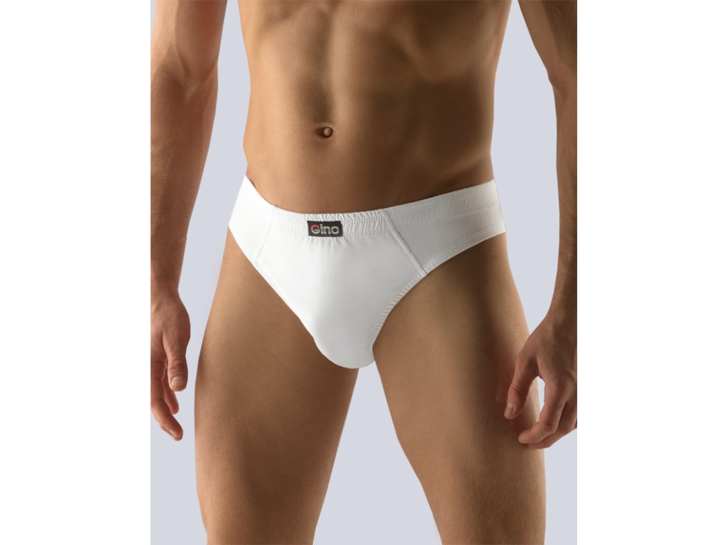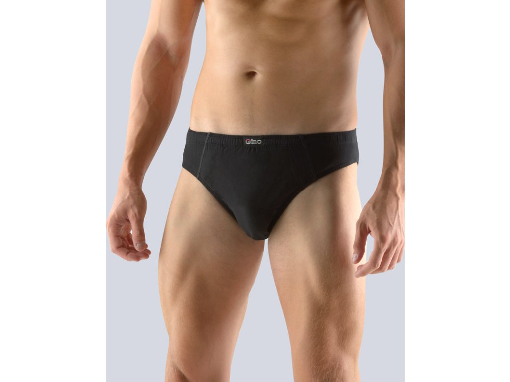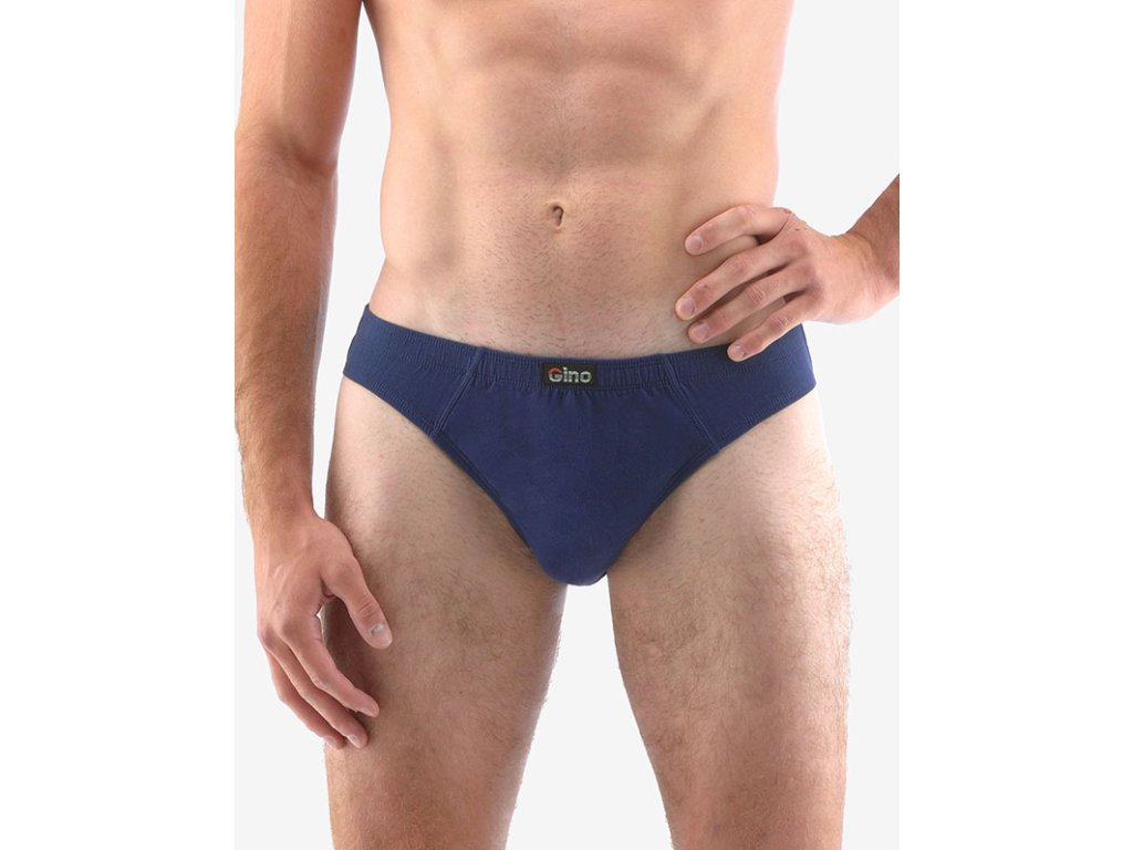 Slipy s úzkým bokem, pánské šité prádlo. V pasovém kraji je zašitá širší pruženka. V nohavičkách je zašitá úzká pruženka. Slipy jsou jednobarevné.