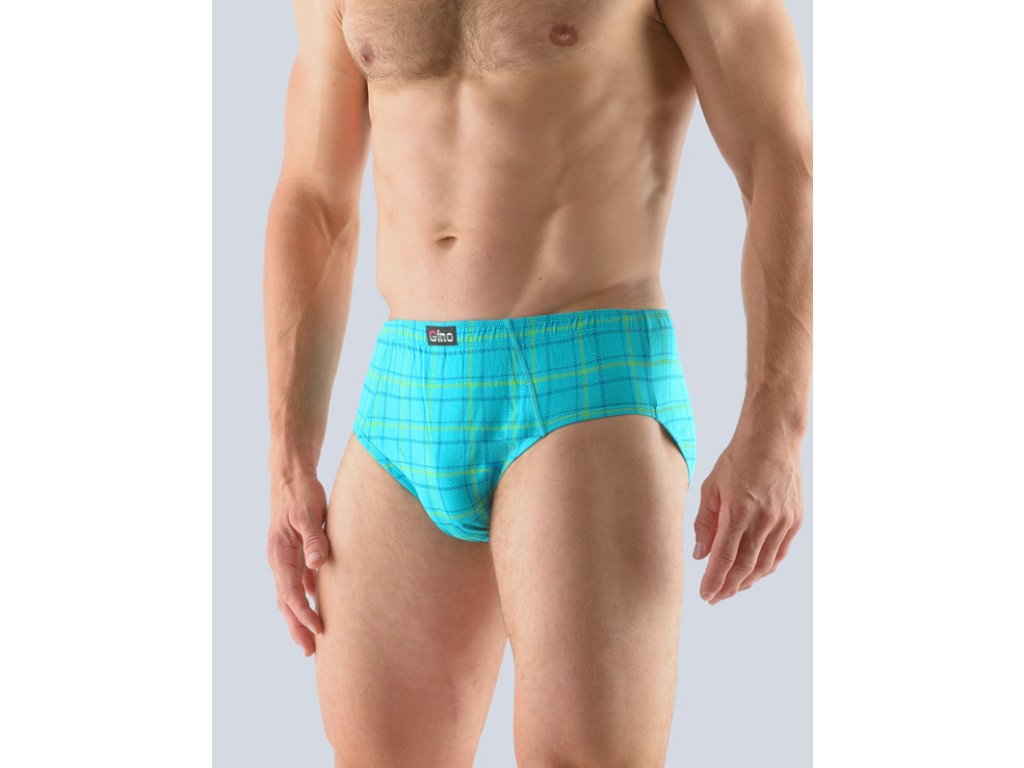 Slipy se širším bokem, pánské šité prádlo. V pasovém kraji je zašitá širší pruženka. V nohavičkách je zašitá úzká pruženka. Slipy jsou potištěné kostkovaným vzorem.